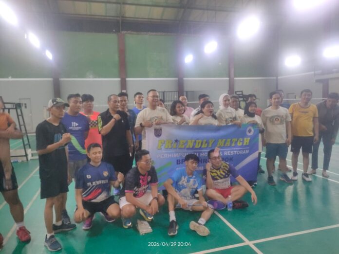 Dinamisnews – Depok – Suasana penuh semangat dan keakraban terasa dalam ajang friendly match badminton yang diselenggarakan oleh Perhimpunan Hotel dan Restoran Indonesia (PHRI) Kota Depok di GOR Sima, Beji, Kota Depok, pada Rabu (29/04/2026). Kegiatan ini diikuti oleh perwakilan perhotelan yang terdiri dari Hotel Savero, Hotel Santika, Hotel Bumi Wiyata, Wisma Makara UI, Wisma Hijau, Hotel Margo dan Fave Hotel.